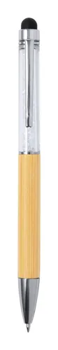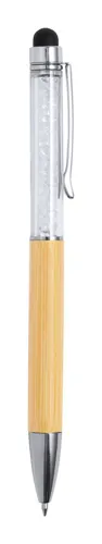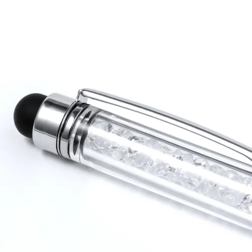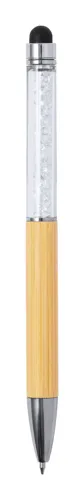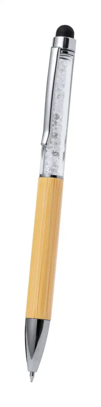Bambusz tekerős érintőképernyős golyóstoll átlátszó felső résszel és kristályokkal. Kék tollbetéttel.
