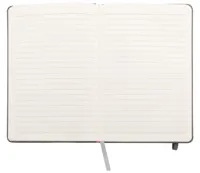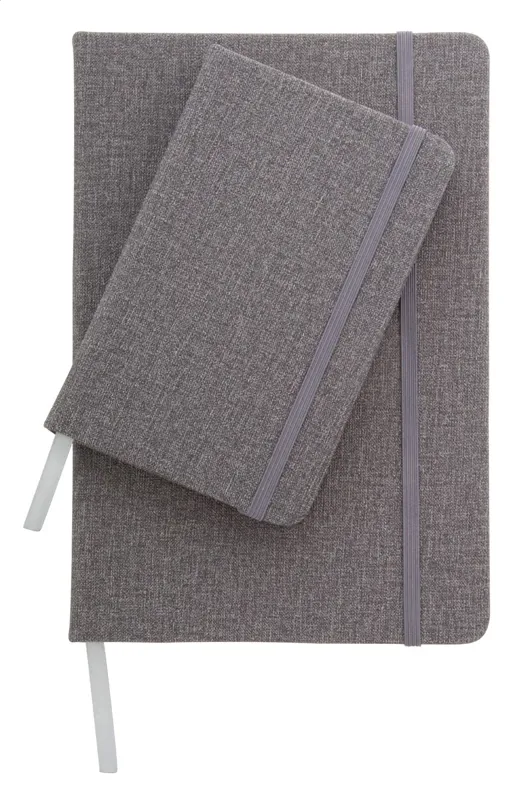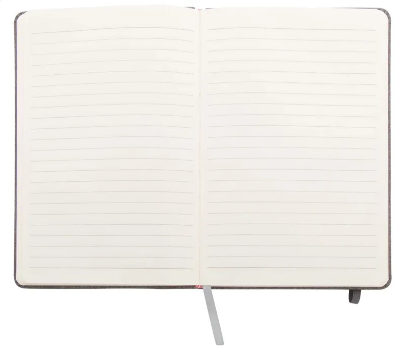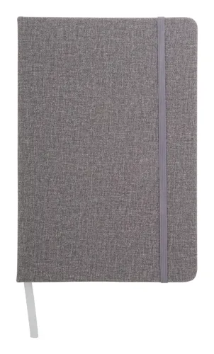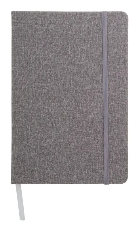 PU bőr borítású textil hatású jegyzetfüzet 80 vonalas lappal, gumipánttal zárható. A5 méretű.