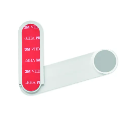 ABS műanyagból készült mágneses telefontartó, a hátoldalán 3M ragasztóval ellátott fémgyűrűvel. Laptopra rögzíthető.