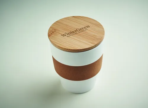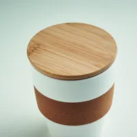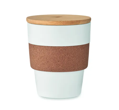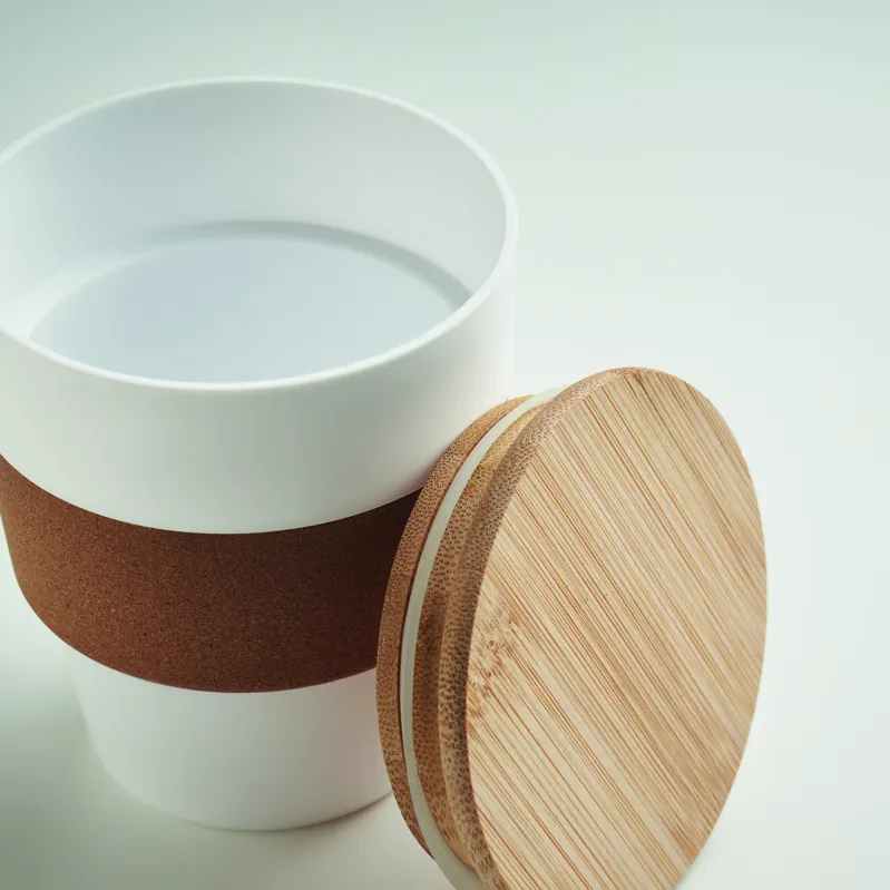 Szimplafalú pohár PP-ből, parafa markolattal és bambuszfedéllel. Űrtartalom: 300 ml. Mivel ez egy szimplafalú bögre, hőátadás lehetséges. A bambusz természetes anyag, színében, mintázatában és méretében esetenként eltérő lehet. Szivárgásmentes.