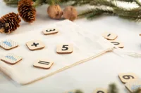 Egyedi gyártású, rétegelt nyírfa lemezből készült oktató számolós játék pamut tasakban. 32 lappal, rajtuk számokkal és matematikai műveleti jelekkel. Az ár tartalmazza a megegyező full colour nyomtatást az összes lap hátoldalán. Minimális rendelési mennyiség: 100 db.