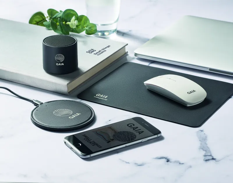 5.0 vezeték nélküli hangszóró ABS és 58%-ban újrahasznosított PU burkolattal (40% újrahasznosított poliészter és 18% újrahasznosított PU) és LED fényjelzéssel. Teljesítmény: 3W, 3 Ohm és 5V. Üzemidő kb. 3 óra.