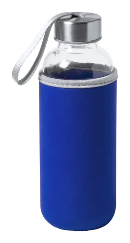 Üveg kulacs hordszíjjal és színes neoprén borítással. 420 ml. Nem alkalmas szénsavas italok tárolására.