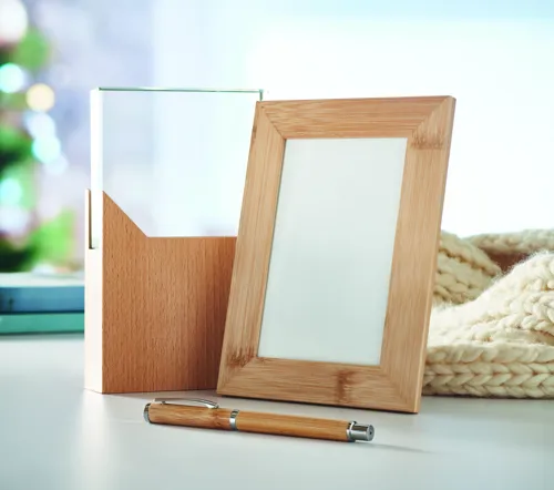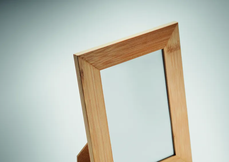 Bambusz fotókeret. Képméret: 15 x 10 cm. Álló és fekvő helyzetben is kitámasztható, valamint falra akasztható. A bambusz természetes anyag, színében, mintázatában és méretében esetenként eltérő lehet.