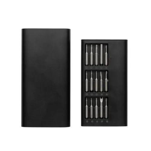 A tökéletes, nagy teljesítményű precíziós bitkészlet mobiltelefonok, tabletek, PC-k és egyéb tárgyak javításához szükséges alapvető alkatrészeket tartalmaz. A legtöbb elektronikai cikk élettartama egy egyszerű javítással könnyen meghosszabíható, sok végrehajtási mód akár az interneten is megtalálható. 31 db-os készlet elegáns alumínium tokban. Csavarhúzó markolattal. T5H, T6H, T8H, T10H, T15H, SL1.5, SL2.0, SL3.0, SL4.0, PH000, PH00, PH0, PH1, PH2, H1.5, H2.0, H3.0, H4.0, T2, T3, T4, Y0.6, Y1, Y2.5, P2, P5, P6, U2.6, △2.3, Közepes lemez 2.5. Elegáns ajándékdobozban.