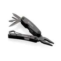 Erős 420-as rozsdamentes acélból készült zsebméretű multifunkciós szerszám. Többféle funkcióval, többek között: hosszú orrú fogó, standard fogó, drótvágó olló, kés, palacknyitó, lapos csavarhúzó, Philips csavarhúzó, reszelő, reszelőtisztító és karabinerhorog. FSC® mix csomagolásban.
