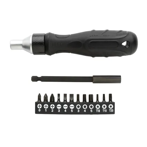 Csavarhúzó készlet kiváló minőségű S2 ötvözött acél tengellyel és bitekkel. A készlet több bitet tartalmaz: PH0/PH1/PH2, SL3/SL4/SL5/HEX3/HEX4/HEX5/TX8/TX10/TX20. Könnyen rögzíthető extra erős mágnessel. A multifunkciós csavarhúzó szükség esetén mindig használatra kész. Elegáns ajándékdobozban. A bitek anyagkeménysége 60-62 HRC.