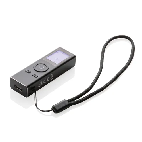 A funkcionalitás, az anyagok és a dizájn egyesül ebben az újratölthető, 30 méteres lézeres mérőeszközben amely RCS újrahasznosított alumíniumból készült. Teljes újrahasznosított anyagtartalom: 22% a termék összsúlya alapján. Az RCS-tanúsítvány biztosítja az újrahasznosított anyagok ellátási láncát. A lézeres mérőeszköz újratölthető, A-fokozatú, 250 mAh-s akkumulátort használ, így nincs szükség az elemek cseréjére. Egyszerű újratöltés az USB-aljzaton és a mellékelt RCS újrahasznosított C típusú kábelen keresztül. 2. osztályú lézer. Válaszidő: 0,1 másodperc. A mérőeszköz méter/inch/láb értékre állítható. A lézer színe: piros. Hangemlékeztetővel a mérés befejezésekor. C típusú bemenet, 5 V/1 A.