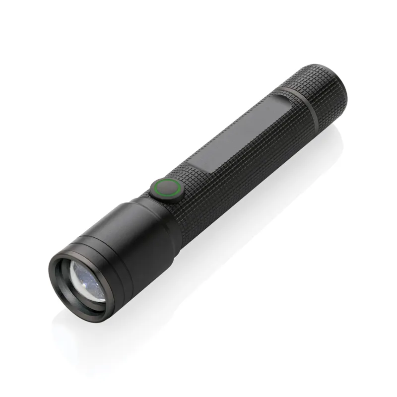 A funkcionalitás, a teljesítmény és a dizájn egyesül ebben az újratölthető 3W-os zseblámpában, RCS újrahasznosított alumíniumból. Teljes újrahasznosított anyag tartalom: 20% a termék összsúlya alapján. Az RCS-tanúsítvány biztosítja az újrahasznosított anyagok ellátási láncát. IP4-es besorolásának köszönhetően időjárásálló, így kivihető a szabadba. Az erős izzó akár 100 lumen fényerőt és akár 100 métert is elérő sugarat hoz létre. A zseblámpa újratölthető, A-fokozatú akkumulátort használ így nincs szükség az akkumulátorok cseréjére. Egyszerű újratöltés az USB-aljzaton és a mellékelt RCS újrahasznosított C típusú kábelen keresztül. A kiváló minőségű izzó 5 üzemmóddal rendelkezik, beleértve az SOS funkciót. Az 500 mAh-s akkumulátor akár 4 órás használatot tesz lehetővé egyetlen töltéssel. Az alumínium nem veszíti el tulajdonságait az újrahasznosítási folyamat során és végtelenül újrahasznosítható. A termék és tartozékai 100% PVC-mentesek. FSC mix csomagolásban.
