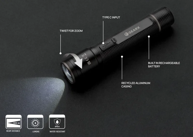 Gear X RCS újrahaszn. alumínium USB újratölthető zseblámpa Fekete