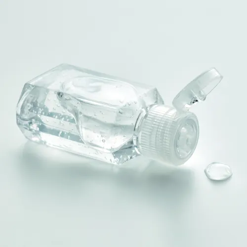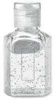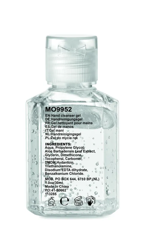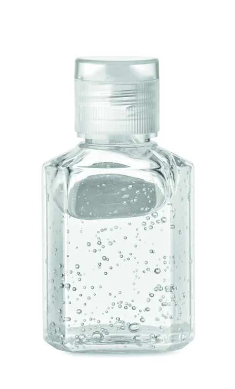 Kéztisztító gél flip top (ráütős) kupakos PET flakonban. Űrtartalom 30 ml. Nem alkohol készítmény. Ez a termék kozmetikai cikk besorolású.