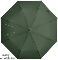 21 colos, luxus, automata, 3 szakaszos összecsukható viharesernyő 190T nyersselyemből. Acél nyél, fekete üvegszálas váz és fém csúcsok. Fekete gumírozott markolat műgyanta matricával. Hozzáillő tokban. Automata záródás.