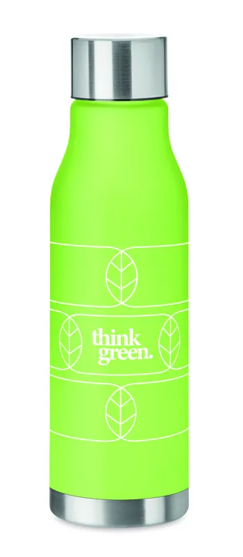 RPET ivópalack gumírozott kivitelben, RPET belsejű rozsdamentes acél kupakkal, szilikon tömítőgyűrűvel. BPA mentes. Szivárgásmentes. Űrtartalom: 600 ml. Nem alkalmas szénsavas italokhoz.