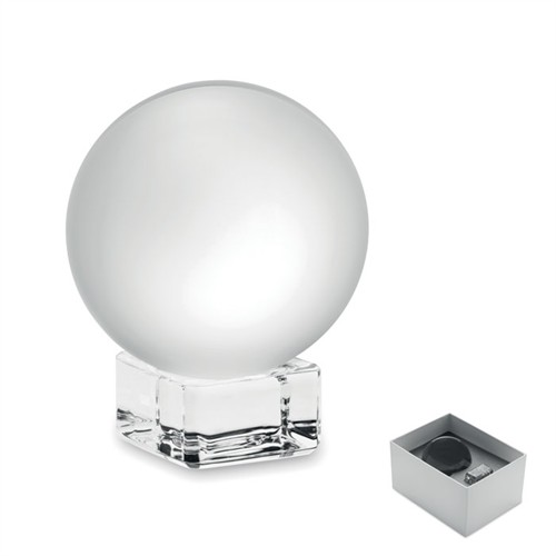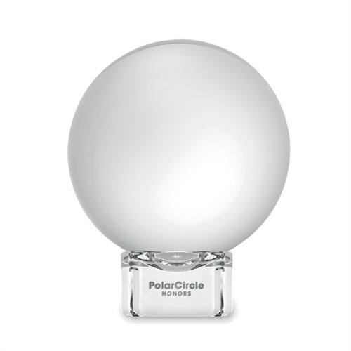 Gömb alakú, üveg díj vagy emlékplakett talapzattal. Ajándékdobozban.