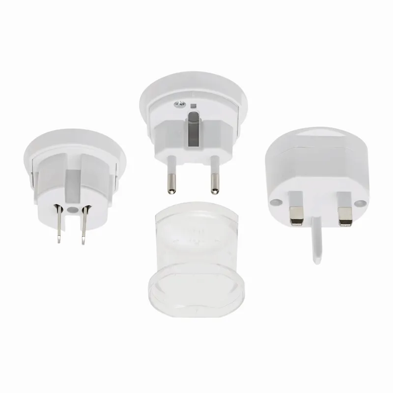GLOBAL utazó adapter 3 féle csatlakozási lehetőséggel, Európába, Ázsiába, Ausztráliába és Észak-Amerikába (svájcban nem alkalmazható), csak a nem földelt egységekhez használandó