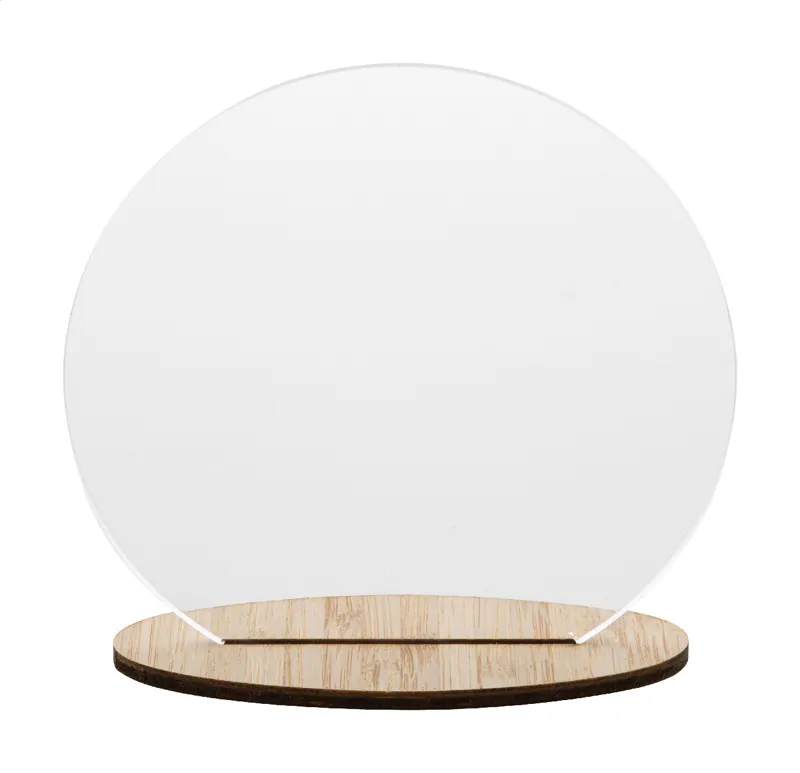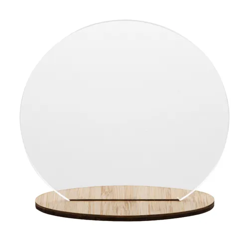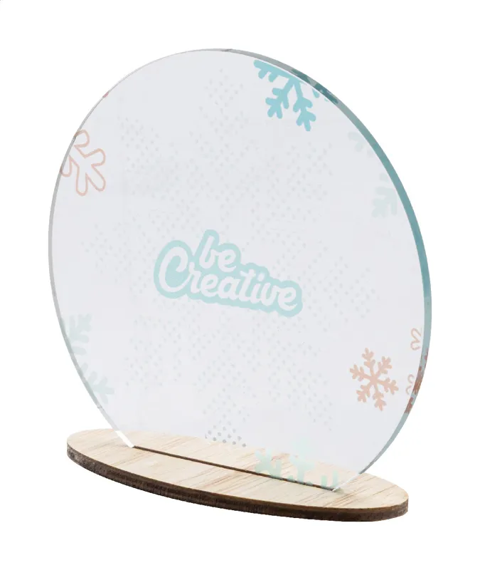 Egyedi gyártású, hógömb alakú akril karácsonyi dekoráció full-colour grafikával és bambusz állvánnyal. Az ár tartalmazza az UV LED nyomtatást. Minimális rendelési mennyiség: 50 db.