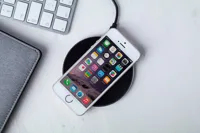 Vezeték nélküli mobiltelefon-töltő (5W) műanyag borítással és LED fénnyel, ami a gravírozott emblémát megvilágítja. USB töltőkábellel szállítjuk.