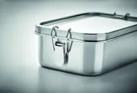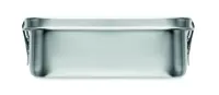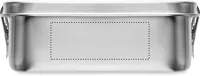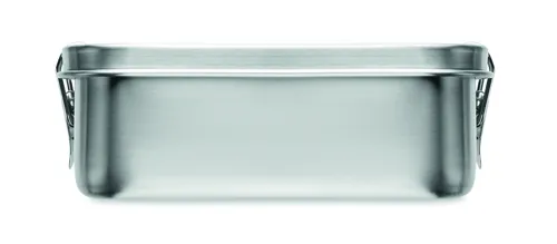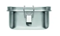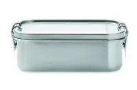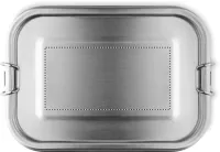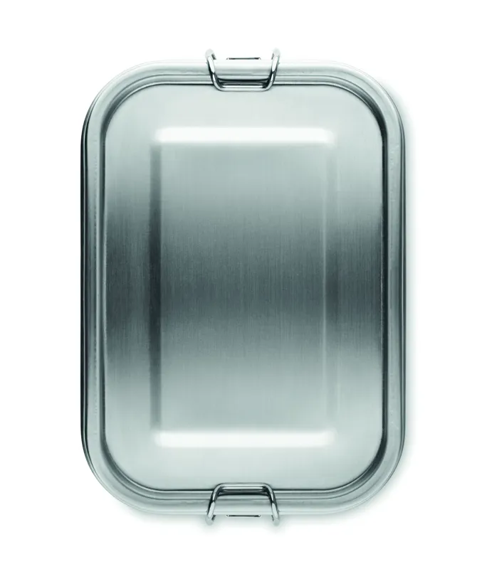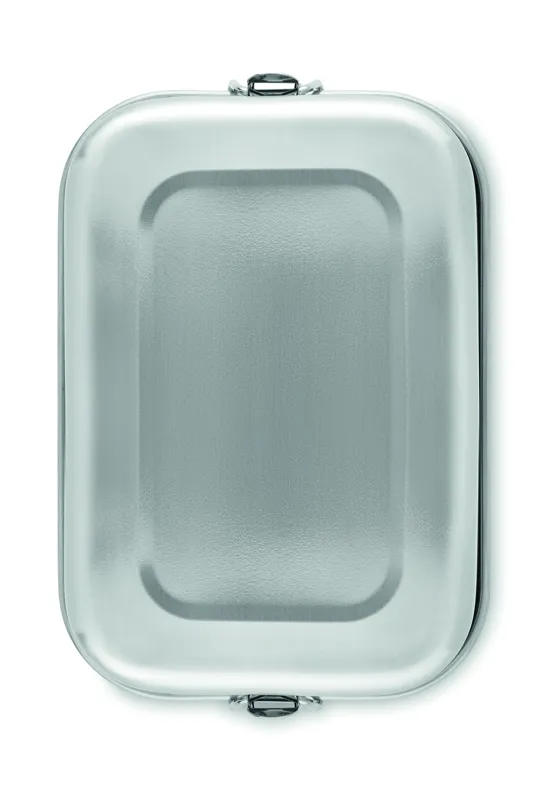 Újrahasznosított rozsdamentes acél (90 % újrahasznosított rozsdamentes acél és 10 % rozsdamentes acél) uzsonnásdoboz, biztonságos oldalsó csatokkal és lekerekített sarkokkal. Űrtartalom: 750 ml.