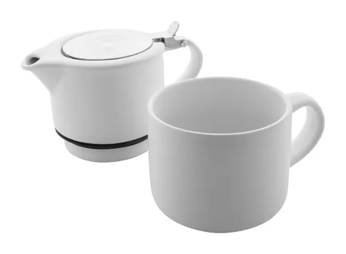 Kiváló minőségű kerámia teáskészlet matt felülettel. Tartalmaz egy teáskannát (430 ml) rozsdamentes acél fedéllel és teaszűrővel, amely illeszkedik a hozzá tartozó bögréhez (400 ml). Kraft papír dobozban.