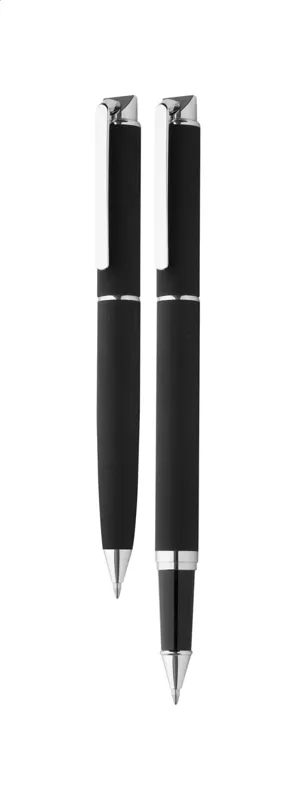 2 darabos toll szett fekete, mágneszáras karton dobozban. A szett egy-egy fémből készült, gumírozott roller és golyóstollat tartalmaz. Fekete tollbetéttel szállítjuk.