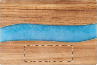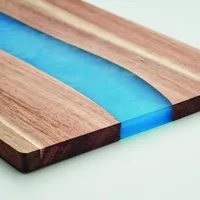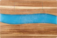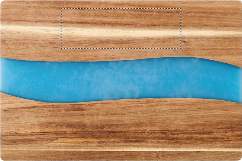 Akáciafa vágódeszka dekoratív epoxigyanta részletekkel. A fa természetes anyag, termékenként szín- és méretbeli eltérések jelentkezhetnek, ami befolyásolhatja a dekoráció végső eredményét.