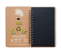 A5 fenyőmagos GROWNOTEBOOK™ jegyzetfüzet keménytáblás borítóval. Ikerspirálozott. 144 vonalas oldal (72 lap). Adjon vissza egy fát a természetnek ezzel a fenntarthatóan előállított papír jegyzetfüzettel. A benne lévő fenyőmaggal (pinus nigra) egy új életet adhat a bolygónak. Az ültetett fa évente kb. 30 cm-t nő. EU-ban gyártva.