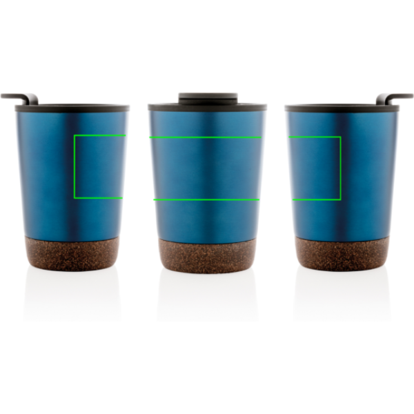 Duplafalú kávésbögre újrahasznosított műanyag belsővel és egyedi parafa alkotóelemmel. Akár 3 órán át melegen és akár 6 órán át hidegen tartja az italokat. GRS újrahasznosított anyagokból. Belseje 100% GRS PP-ből. A GRS-tanúsítvány biztosítja az újrahasznosított anyagok ellátási láncát. Teljes újrahasznosított anyag tartalom: 52% a termék összsúlya alapján. BPA-mentes. Űrtartalma: 300 ml. FSC® kraft csomagolásban.