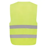 Uniszex, 2. osztályú, jól látható mellények, amelyeket 164-198 cm magas egyének számára terveztek. Elöl és hátul is bőséges hellyel a nagyméretű emblémázásnak így ideálisak professzionális használatra ahol a láthatóság a legfontosabb. Fluoreszkáló hátterük fényvisszaverő csíkkal párosul, ezzel megfelel az EN ISO 20471:2013+A1:2016 szabványnak. Továbbá ezek a ruhák CE jelzéssel vannak ellátva, amely megerősíti az (EU) 2016/425, II. kategóriájú egyéni védőeszközökről szóló rendeletnek való megfelelést. GRS újrahasznosított PET-ből készült. Teljes újrahasznosított anyagtartalom: 67% a termék összsúlya alapján. A GRS-tanúsítvány biztosítja az újrahasznosított anyagok ellátási láncát.
