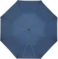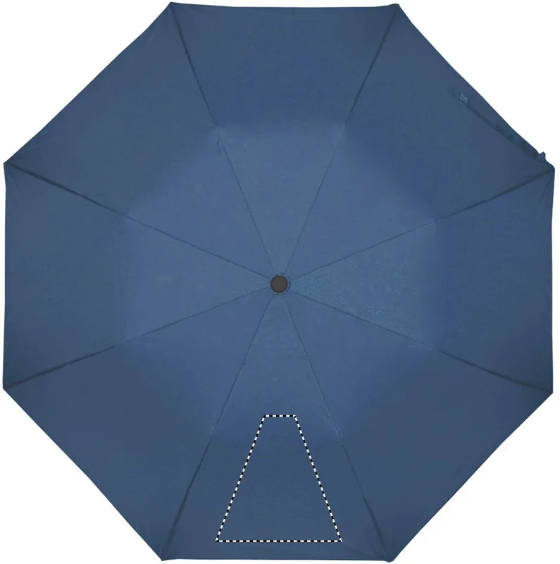 21 colos automata, 2 szakaszos összecsukható esernyő 190T nyersselyem anyagból. Galvanizált acél nyél, váz és csúcsok. Fekete gumírozott ABS markolat. Hozzáillő tokban. Manuális záródás.