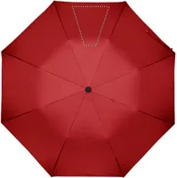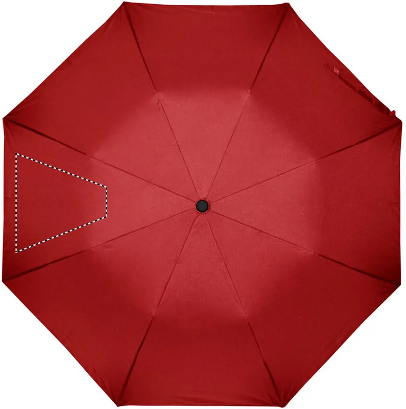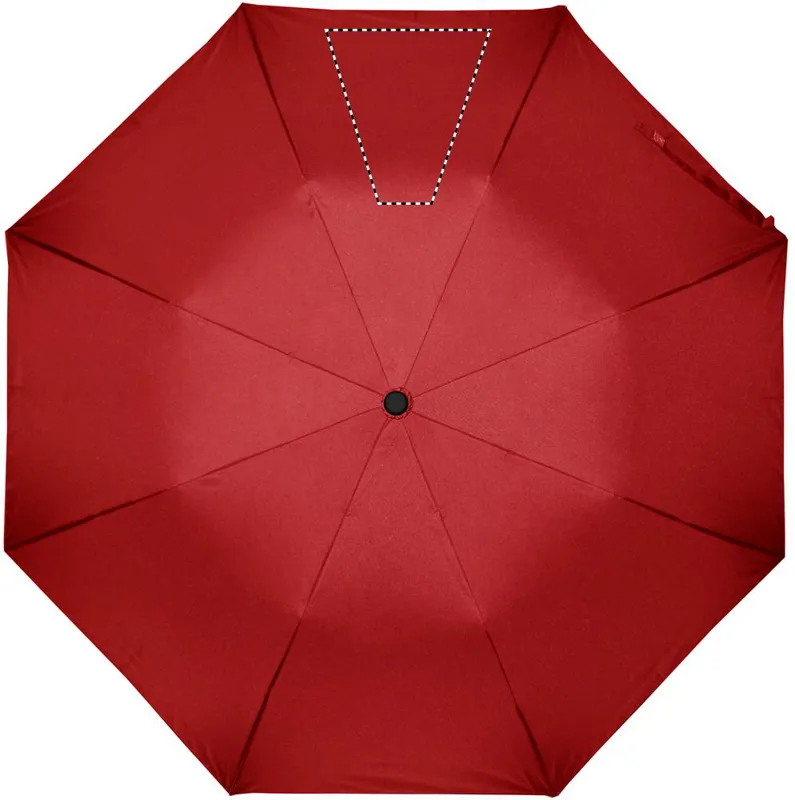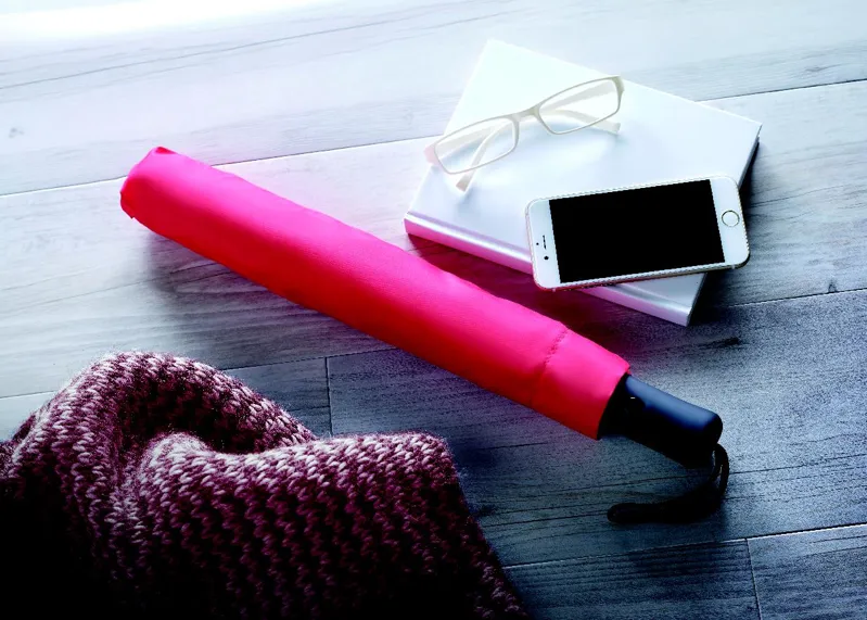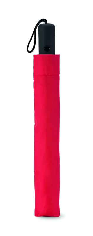 21 colos automata, 2 szakaszos összecsukható esernyő 190T nyersselyem anyagból. Galvanizált acél nyél, váz és csúcsok. Fekete gumírozott ABS markolat. Hozzáillő tokban. Manuális záródás.