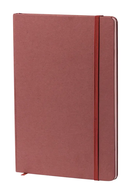 Gyümölcspapír borítású jegyzetfüzet 80 vonalas lappal, újrahasznosított papírból. Könyvjelzővel és gumipánttal. A5 méretű.