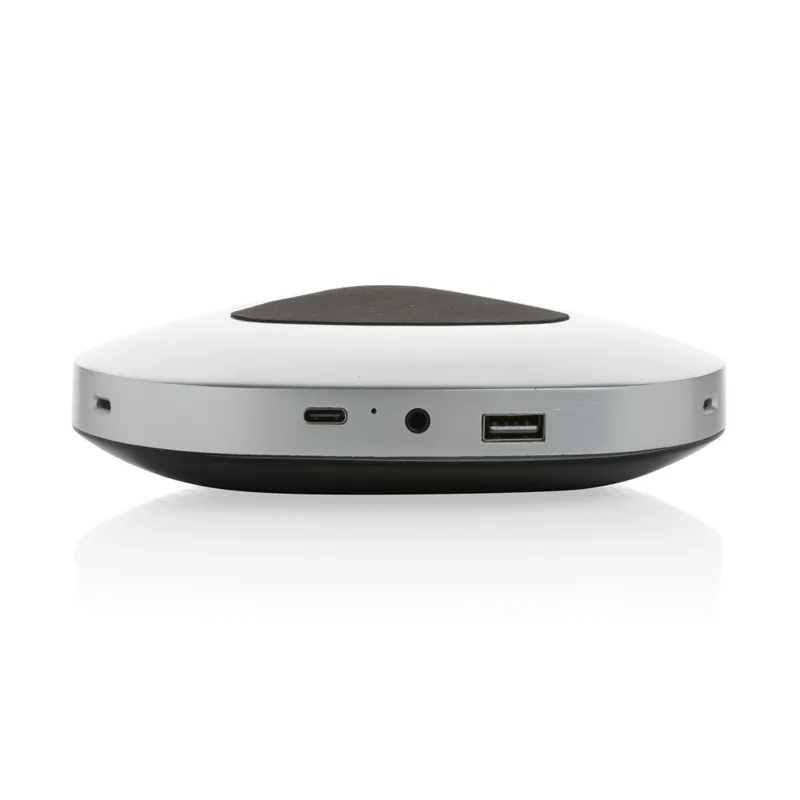Változtasson bármely helyiséget konferenciateremmé ezzel a vezeték nélküli hangszóróval konferenciahíváshoz. A termék bármely eszközhöz csatlakoztatható mely támogatja a vezeték nélküli kapcsolatot. 5.1-es vezeték nélküli kapcsolattal valamint kettő, kiváló minőségű 360 mikrofonnal a tiszta hangátvitelhez három méteres távolságig. 1200 mAh akkumulátor az akár 6 órán keresztül tartó használathoz egyetlen feltöltéssel. Némítás és hangerőszabályozó gombokkal. 100cm hosszú, C típusú kábellel.
