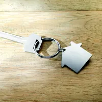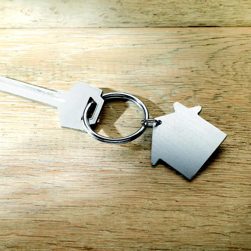 Ház alakú fém kulcstartó.