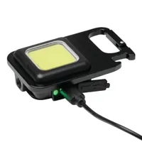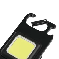 HELPER RECHARGE multifunkciós LED lámpa: nagy COB mező 30 erős LED-del, 3 világítási mód (100%, 75%, villogó), négy rögzítési lehetőség (kihajtható állvány, mágnes, karabiner (a karabiner NEM alkalmas mászásra), belső menet az állványra való rögzítéshez), üvegnyitóval, nagy teljesítményű lítium akkumulátorral (300 mAh), USB töltőkábel C típusú csatlakozóval (kb. 30 cm), be/ki kapcsolóval, dobozban