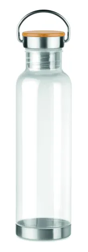 Tritán palack rozsdamentes acél aljjal és bambusz kupakkal. BPA-mentes. Űrtartalom 800 ml. A bambusz természetes anyag, színében, mintázatában és méretében esetenként eltérő lehet. Nem alkalmas szénsavas italokhoz. Szivárgásmentes.