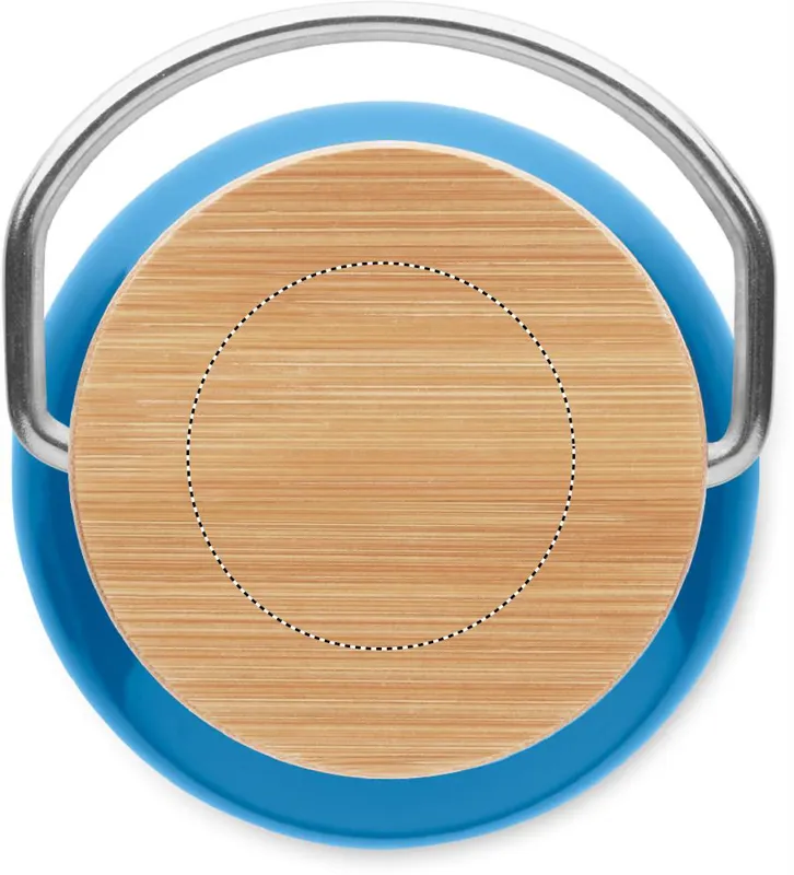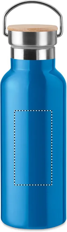Duplafalú rozsdamentes acél termosz 500 ml űrtartalommal. Fém fogantyús bambusz kupakkal. A szublimációs nyomtatás csak a fehér színű terméken érhető el. Szivárgásmentes. A bambusz természetes anyag, színében, mintázatában és méretében esetenként eltérő lehet.