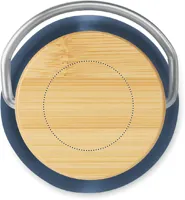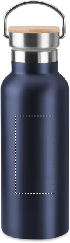 Duplafalú rozsdamentes acél termosz 500 ml űrtartalommal. Fém fogantyús bambusz kupakkal. A szublimációs nyomtatás csak a fehér színű terméken érhető el. Szivárgásmentes. A bambusz természetes anyag, színében, mintázatában és méretében esetenként eltérő lehet.