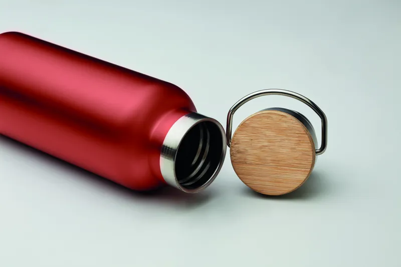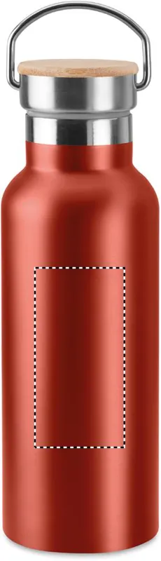 Duplafalú rozsdamentes acél termosz 500 ml űrtartalommal. Fém fogantyús bambusz kupakkal. A szublimációs nyomtatás csak a fehér színű terméken érhető el. Szivárgásmentes. A bambusz természetes anyag, színében, mintázatában és méretében esetenként eltérő lehet.