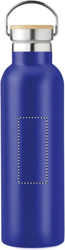 Duplafalú rozsdamentes acél termosz fém fogantyús bambusz kupakkal. Űrtartalom: 750 ml. Szivárgásmentes. A bambusz természetes anyag, színében, mintázatában és méretében esetenként eltérő lehet.