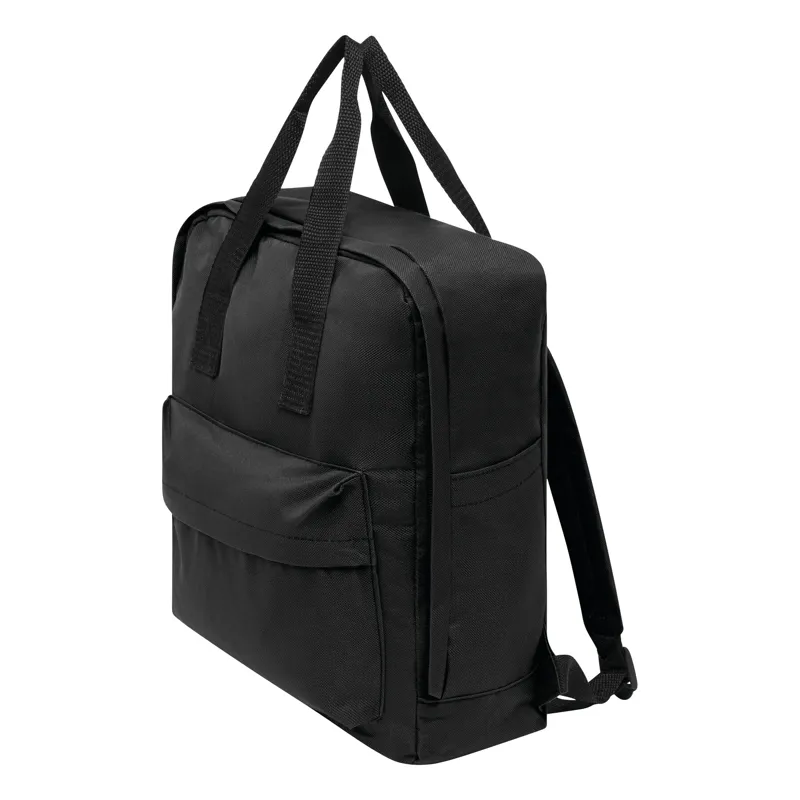 HIP hátizsák: 1 elülső rekesz cipzárral, 1 főrekesz cipzárral, állítható és párnázott vállpántokkal, 2 füllel