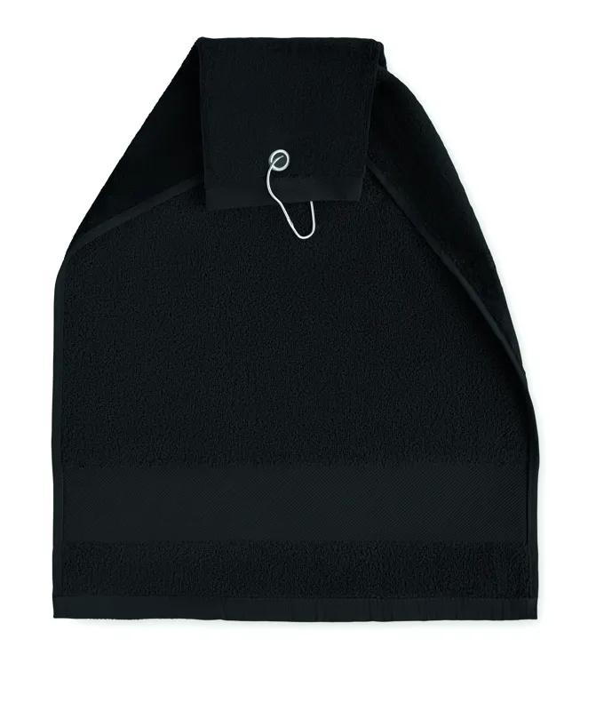 HITOWGO Pamut golftörölköző akasztóval Fekete