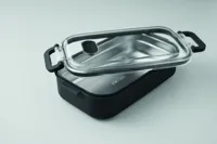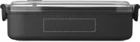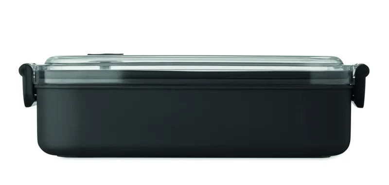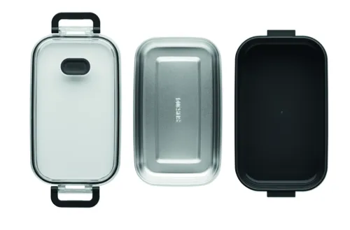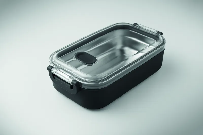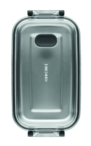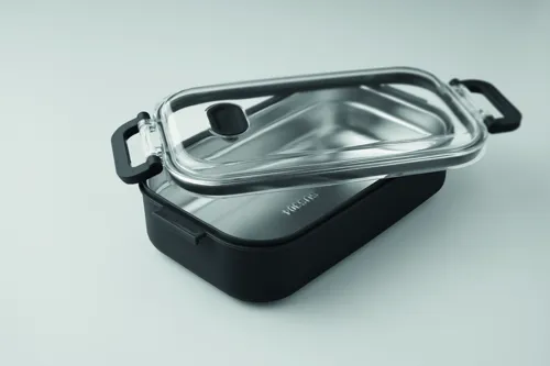 PP uzsonnásdoboz további újrahasznosított rozsdamentes acél belső réteggel. Légmentes AS fedéllel, amely frissen és biztonságosan tartja az ételt. Űrtartalom 750 ml tálca nélkül és 650 ml tálcával.