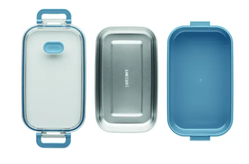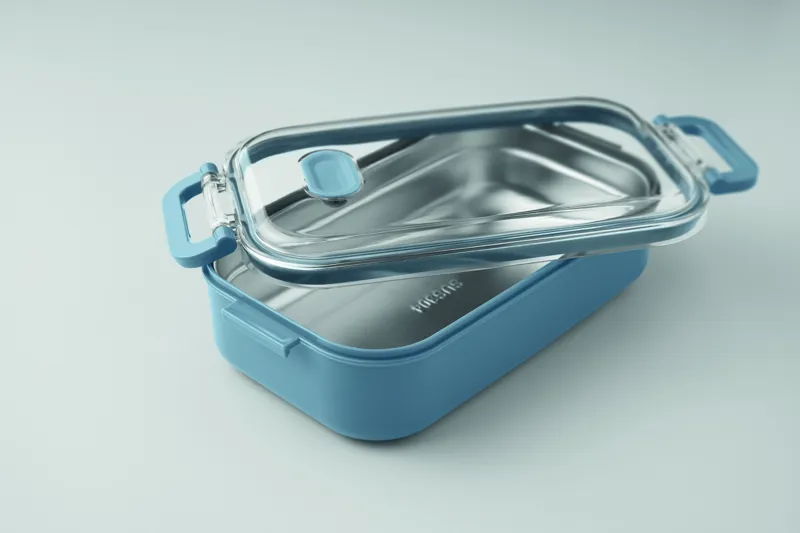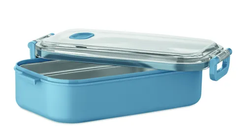 PP uzsonnásdoboz további újrahasznosított rozsdamentes acél belső réteggel. Légmentes AS fedéllel, amely frissen és biztonságosan tartja az ételt. Űrtartalom 750 ml tálca nélkül és 650 ml tálcával.