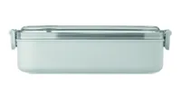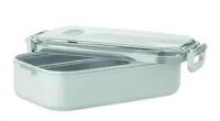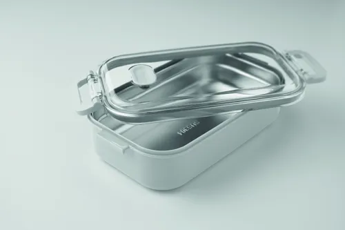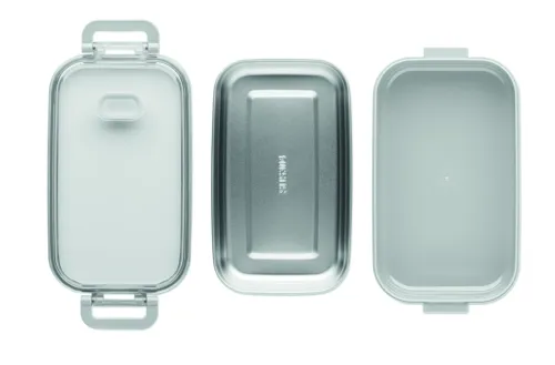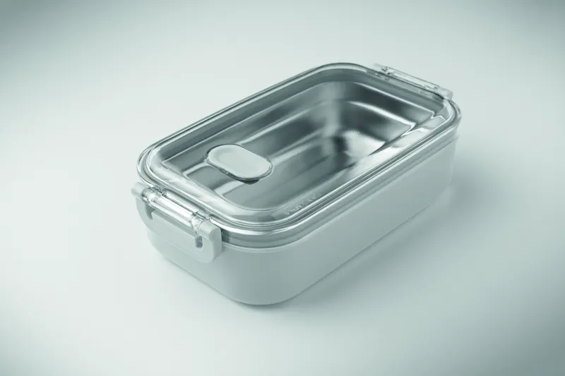 PP uzsonnásdoboz további újrahasznosított rozsdamentes acél belső réteggel. Légmentes AS fedéllel, amely frissen és biztonságosan tartja az ételt. Űrtartalom 750 ml tálca nélkül és 650 ml tálcával.