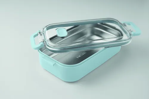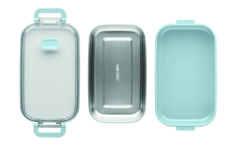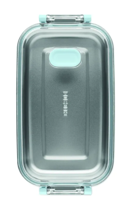 PP uzsonnásdoboz további újrahasznosított rozsdamentes acél belső réteggel. Légmentes AS fedéllel, amely frissen és biztonságosan tartja az ételt. Űrtartalom 750 ml tálca nélkül és 650 ml tálcával.