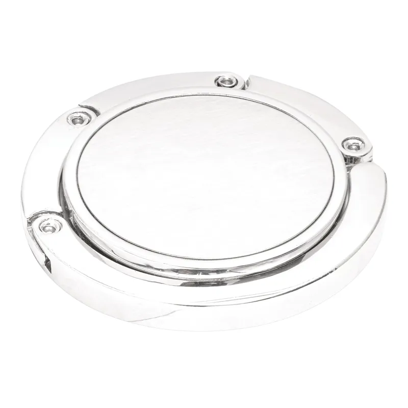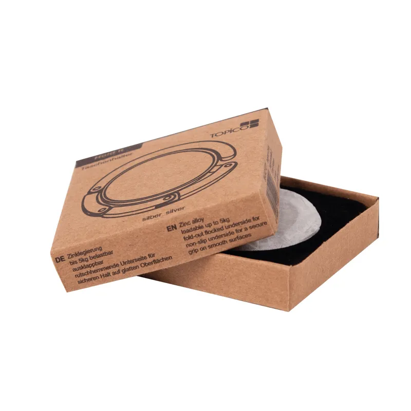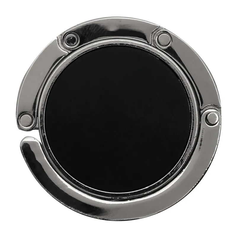 HOLD IT táskaakasztó kinyitható: filc felülettel a biztonságos felhelyezés érdekében akár csúszós felületre is, felső rész ideális hellyel emblémája elhelyezéséhez, fényes fémből