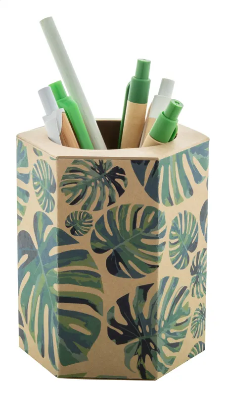 Egyedi gyártású hatszög alapú kraft papír tolltartó. Az ár a full colour nyomtatás költségét tartalmazza. Minimális rendelési mennyiség: 100 db.