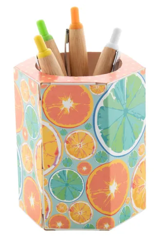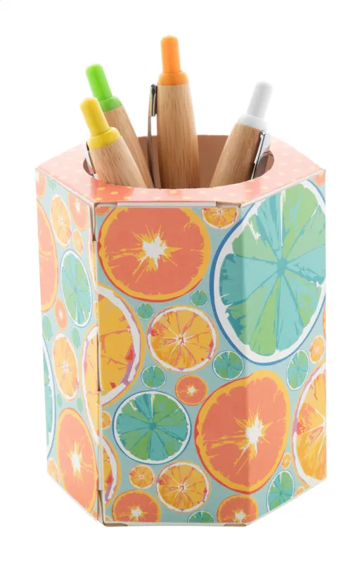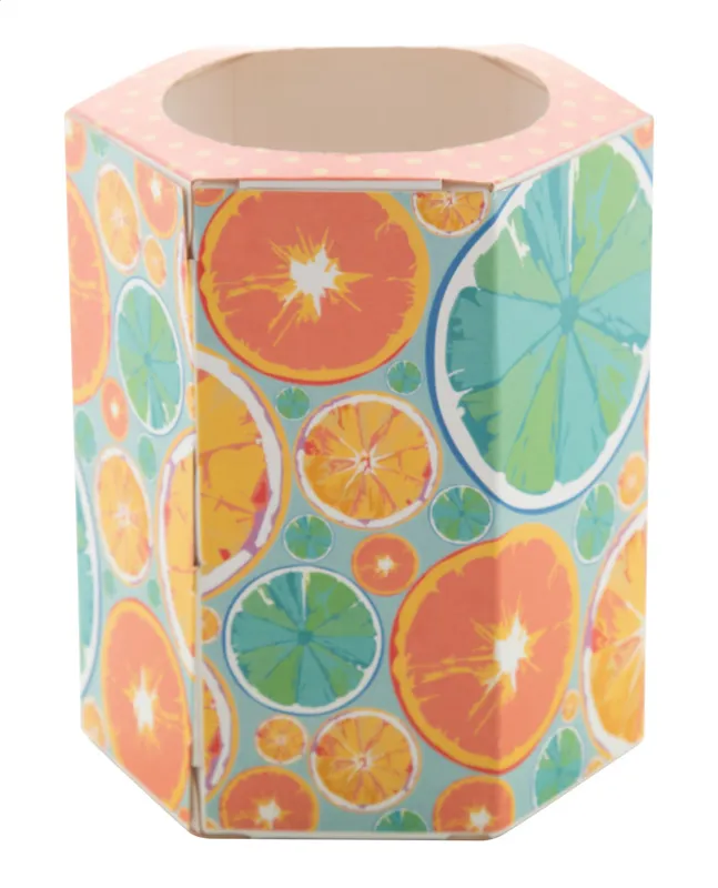 Egyedi gyártású hatszög alapú papír tolltartó. Az ár a full colour nyomtatás költségét tartalmazza. Minimális rendelési mennyiség: 100 db.
