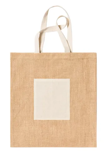 Juta bevásárlótáska pamut zsebbel és hosszú pamut füllel.