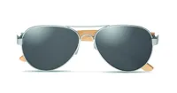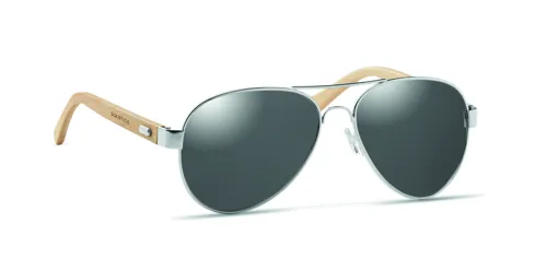 Napszemüveg bambusz szárral és színes tükörlencsével, mikroszálas tokban. UV400-as védelem. A bambusz természetes anyag, színében, mintázatában és méretében esetenként eltérő lehet.
